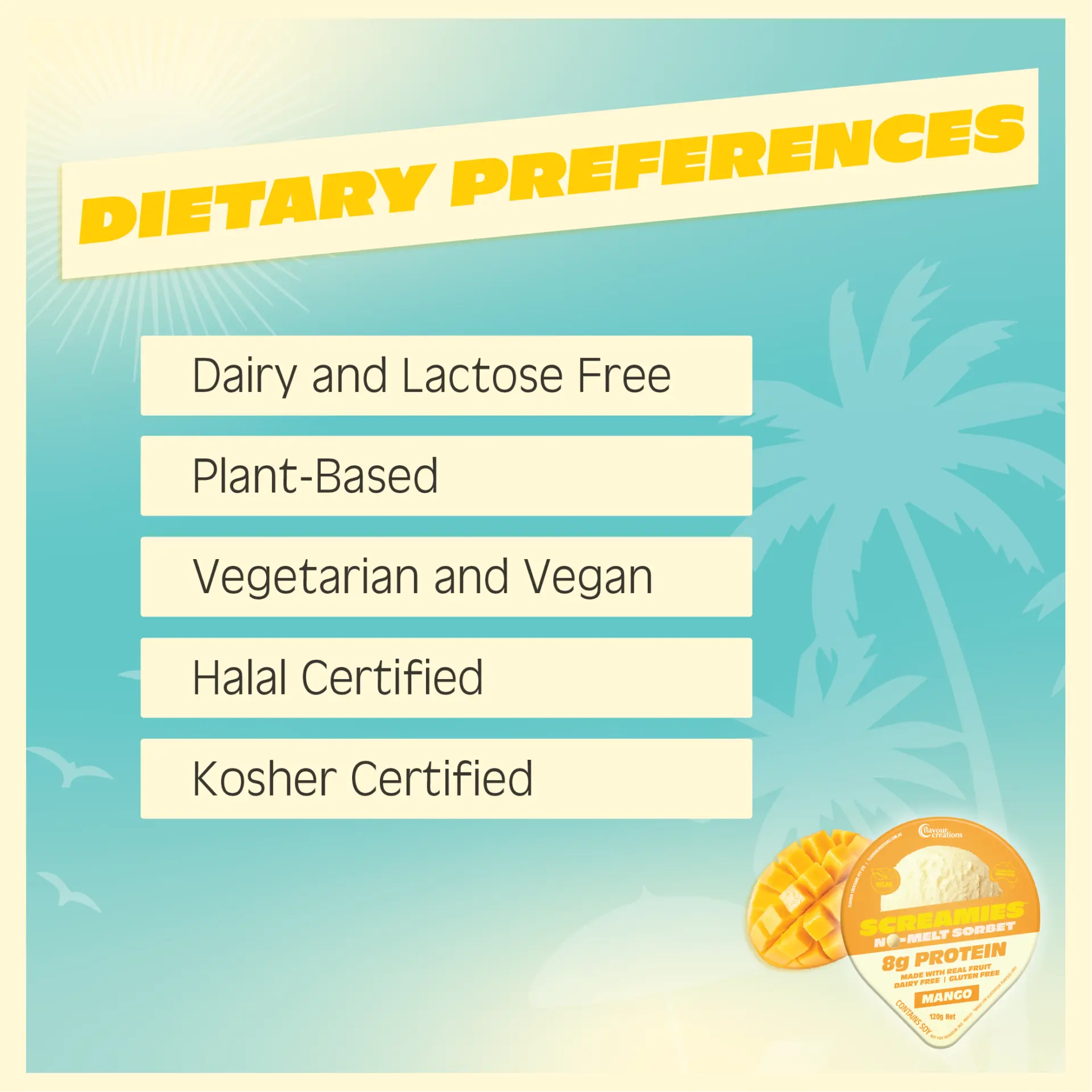 Perfect for children aged 1+ and adults alike, SCREAMIES Sorbet fits religious, ethical, and specialised dietary needs.